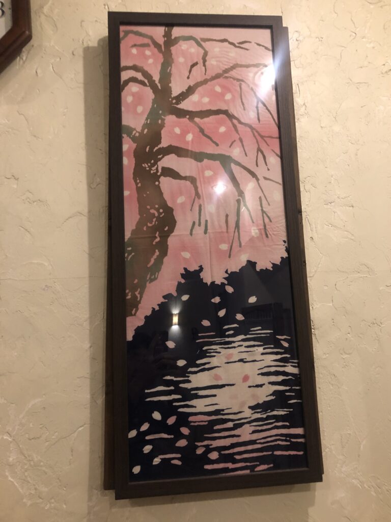 手ぬぐい額を新調!今回は「夜桜」です😊 3/11 早く世界が平和になってほしいと切に願います。